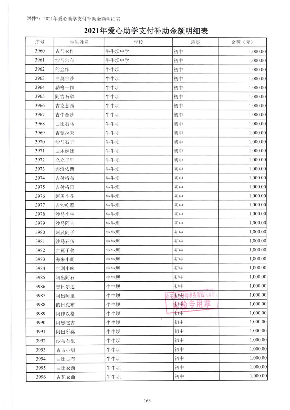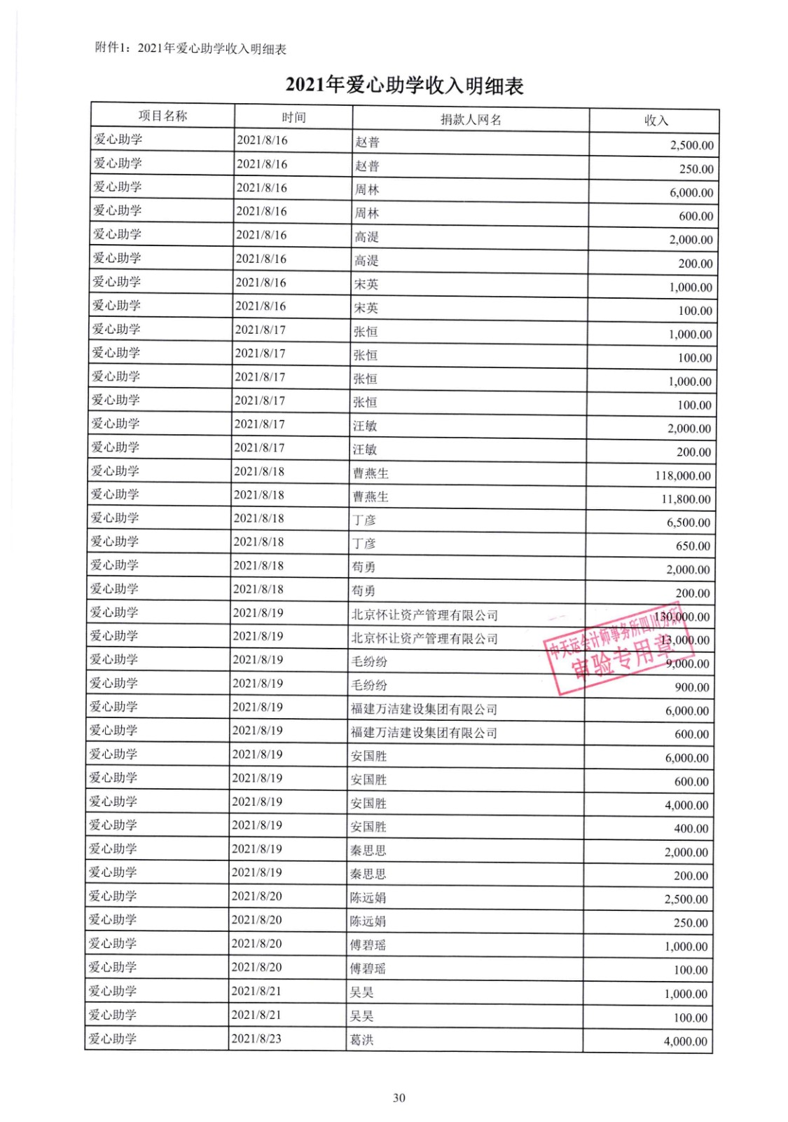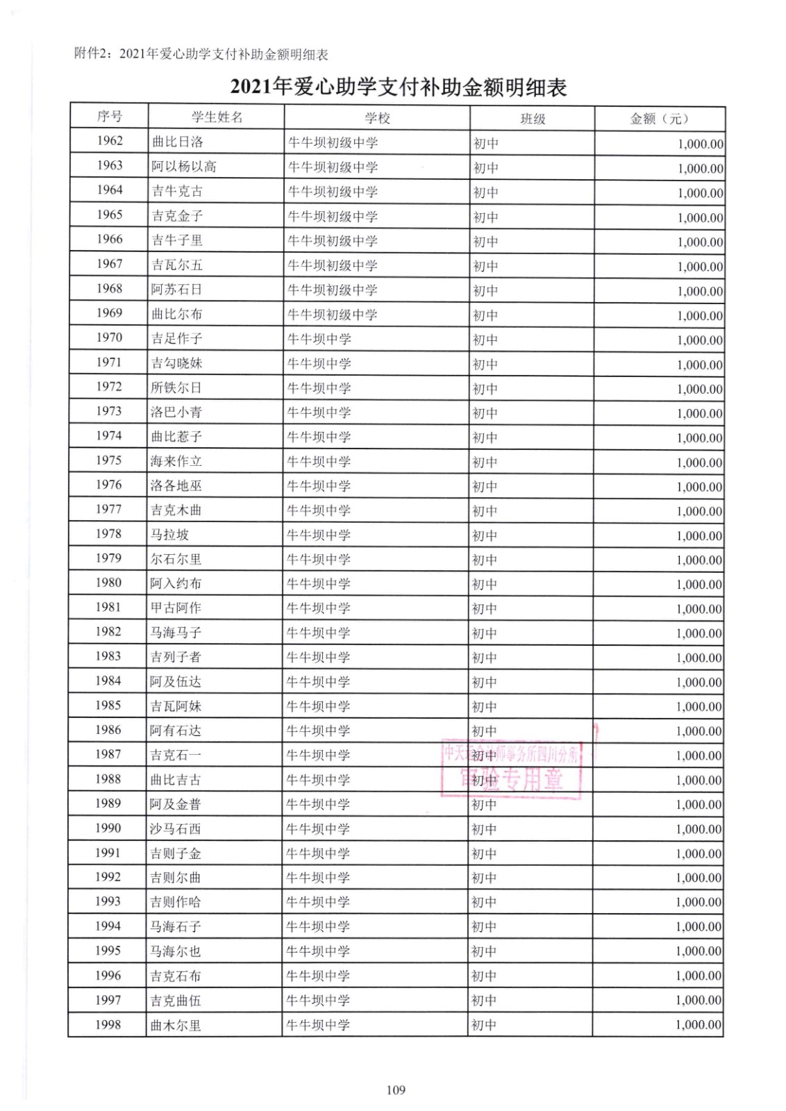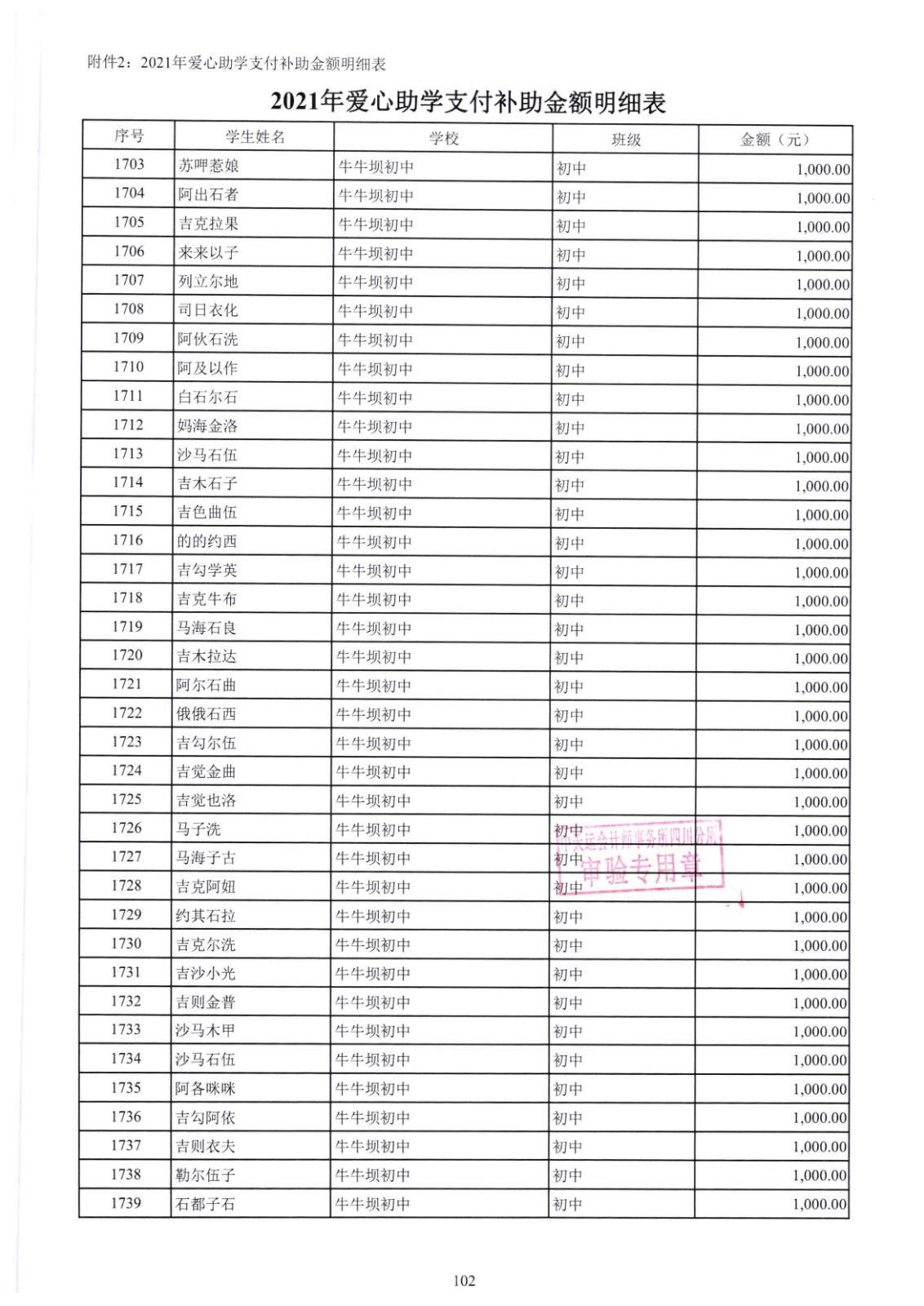 四川省索玛慈善基金会2021年爱心助学收支明细专项审计报告