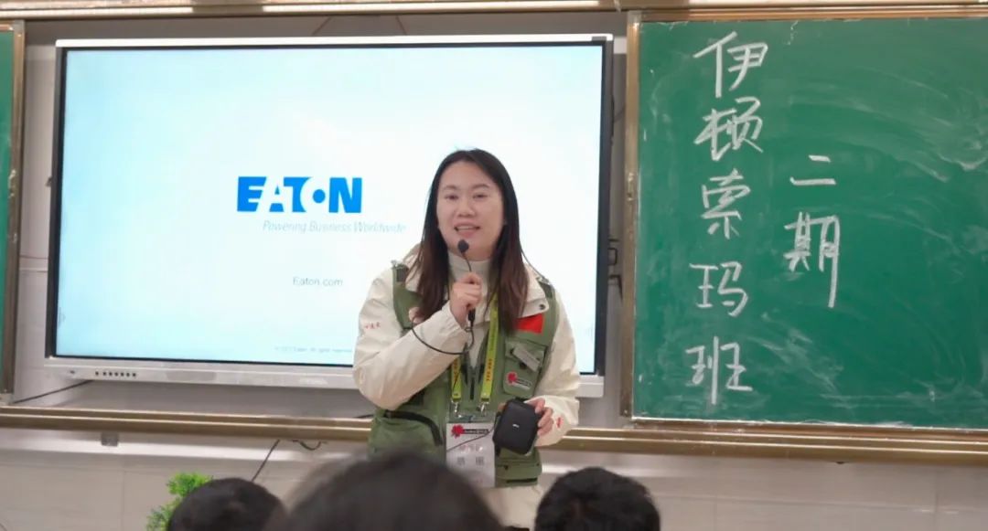 伊顿中国公共事务高级经理陈卓娅向同学们介绍了伊顿公司,并表示推动教育均衡一直以来是伊顿中国公益项目的重要关注点之一,公司鼓励员工深入大凉山,通过参加家访活动、中考赋能、资助学生等一系列措施,努力为更多孩子提供平等的教育机会。