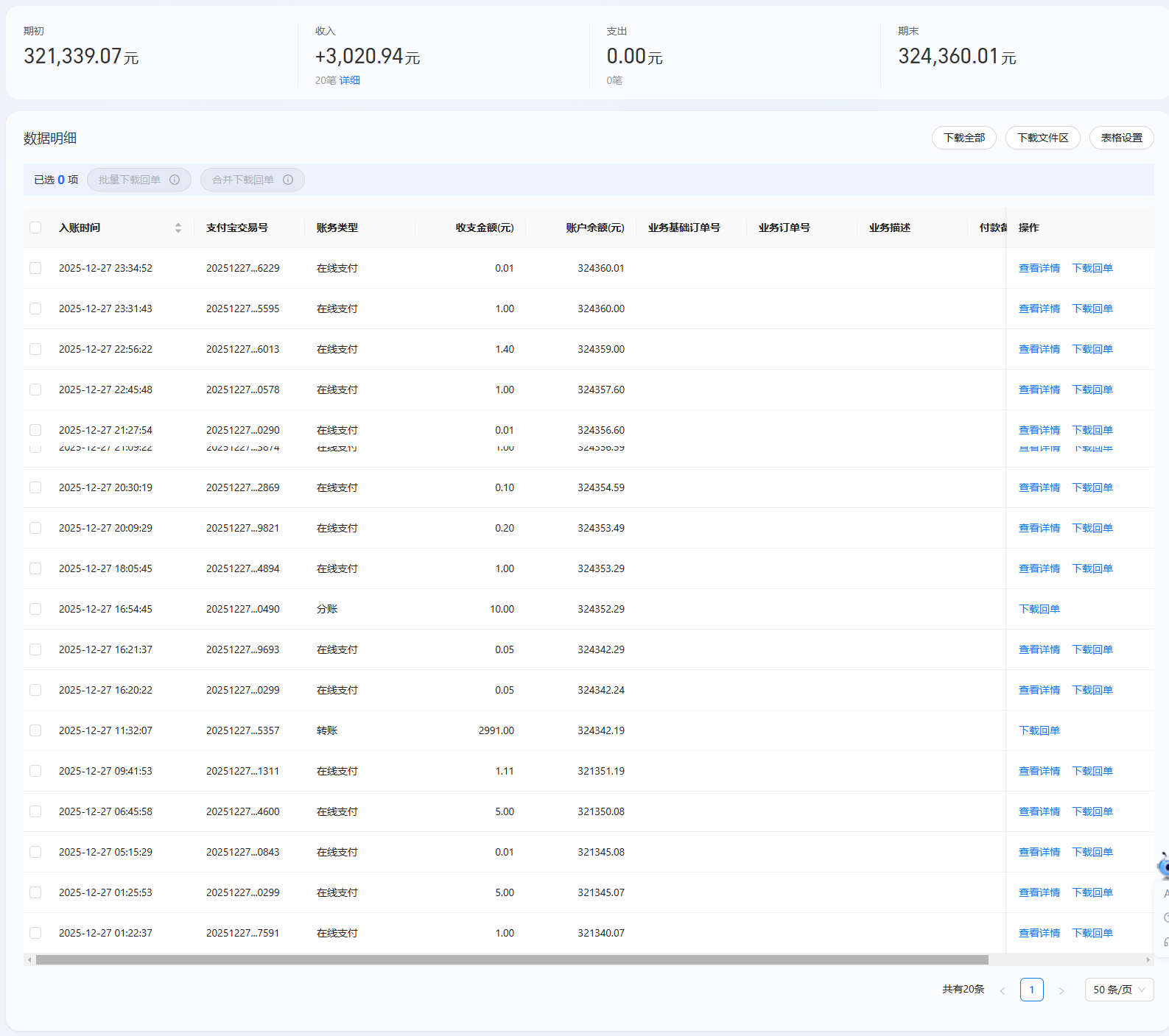 | 12月27日收到 | 财付通支付科技有限公司 | 暂未开票 | ¥245.02 | 请救助凉山病患学生 |
