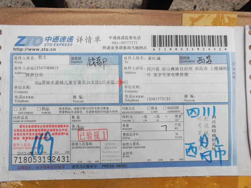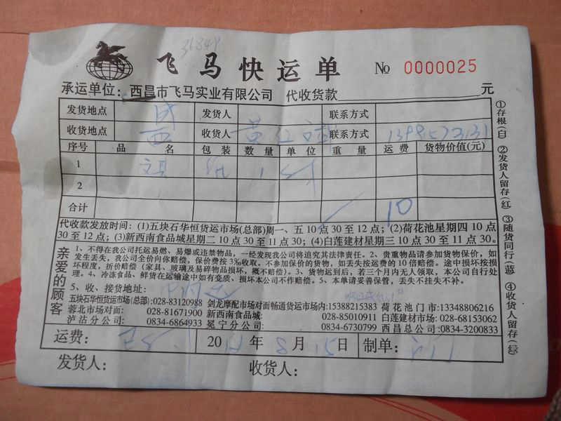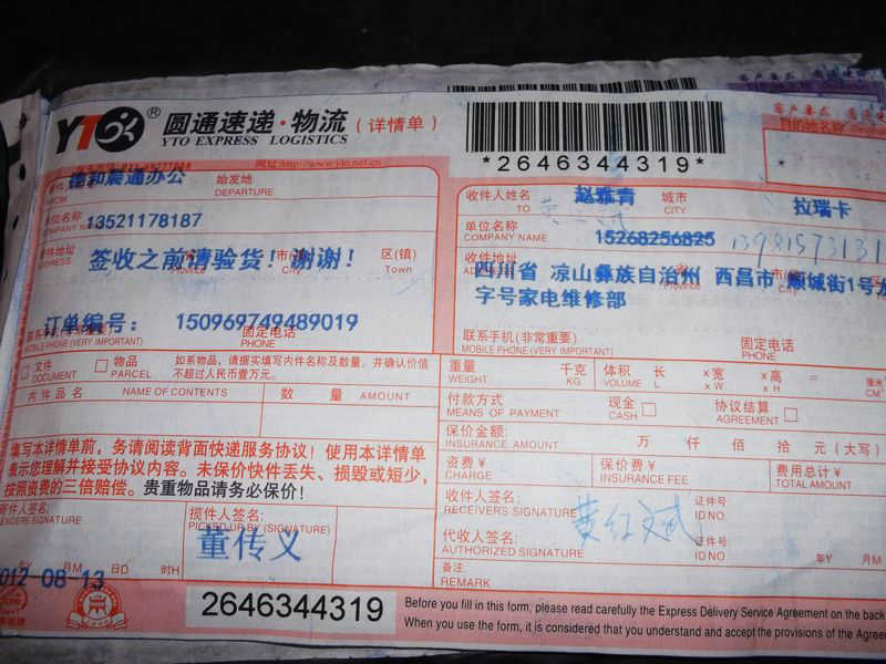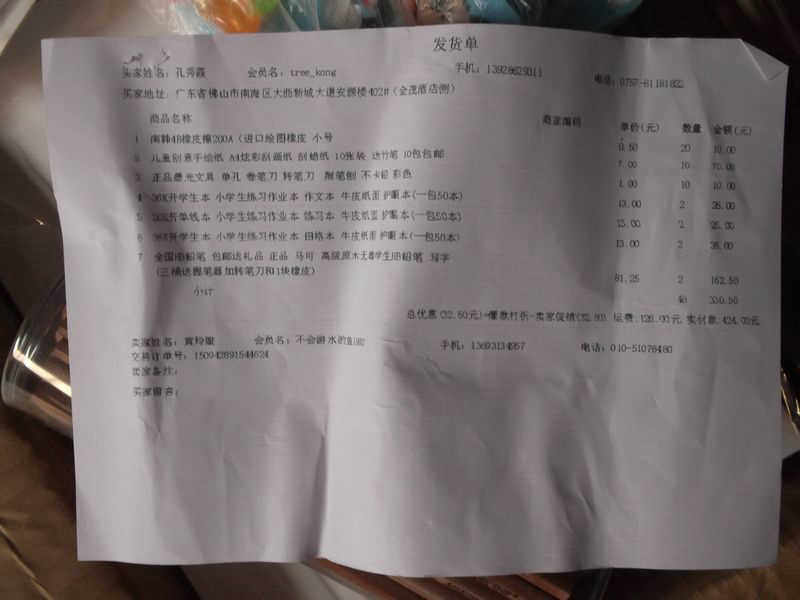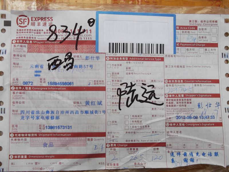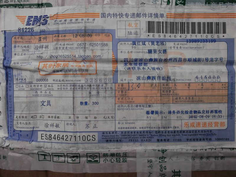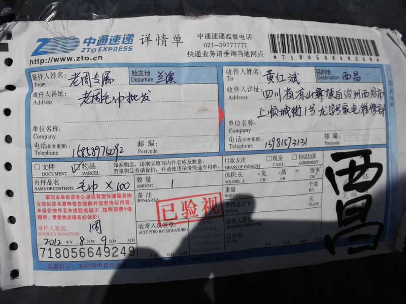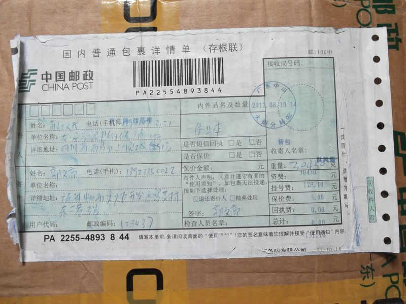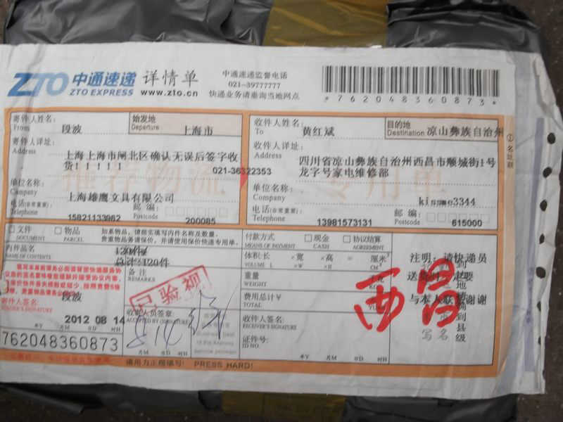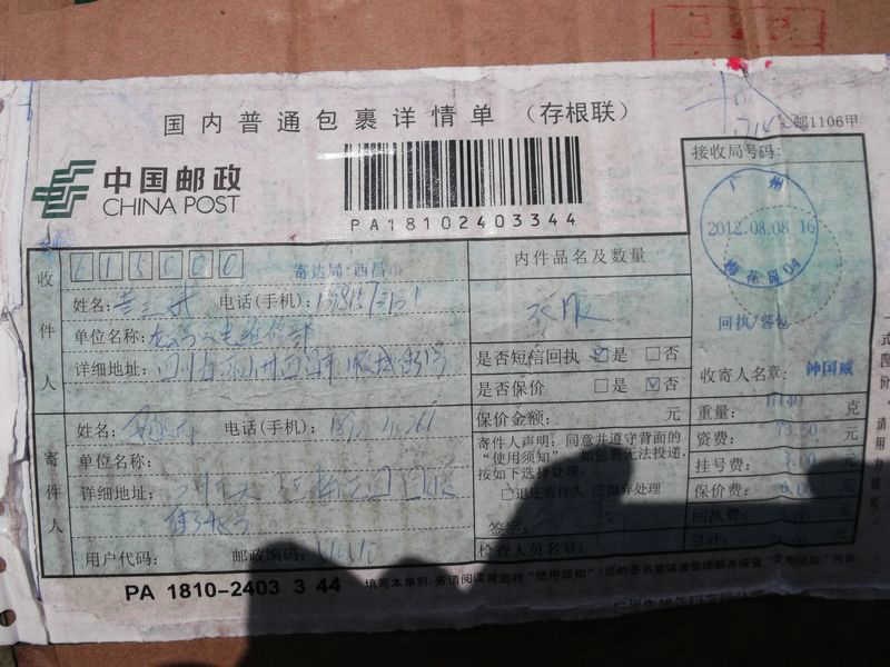 2012.8.12-8.18 物资收到情况