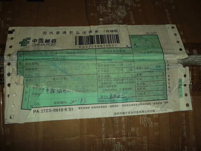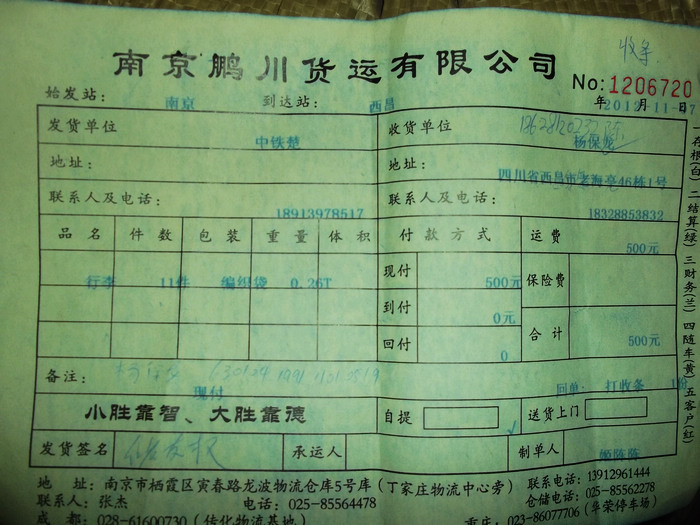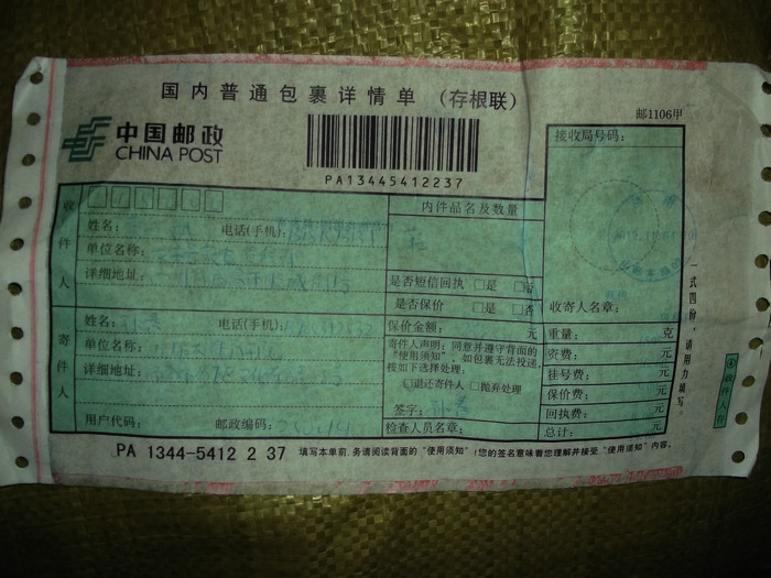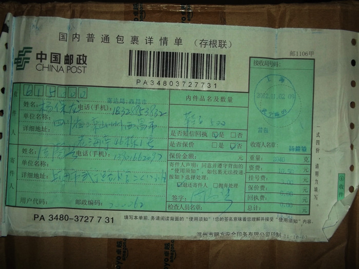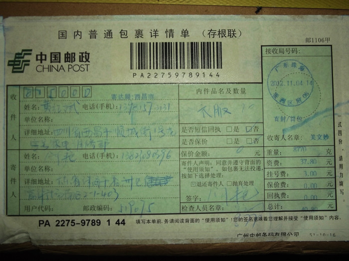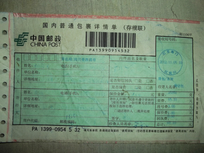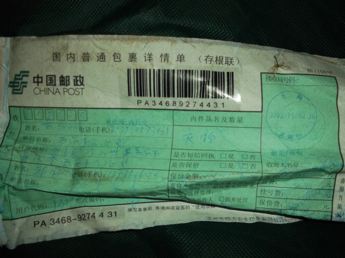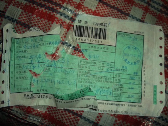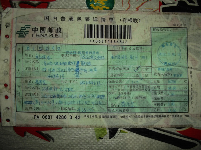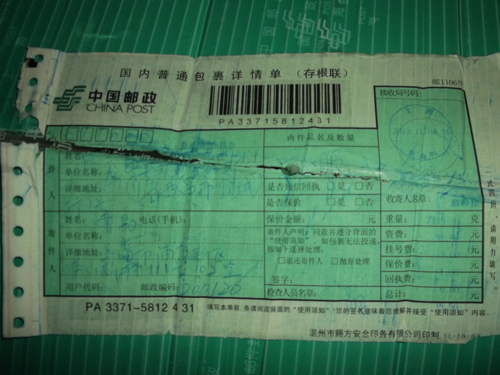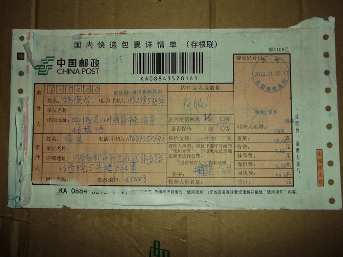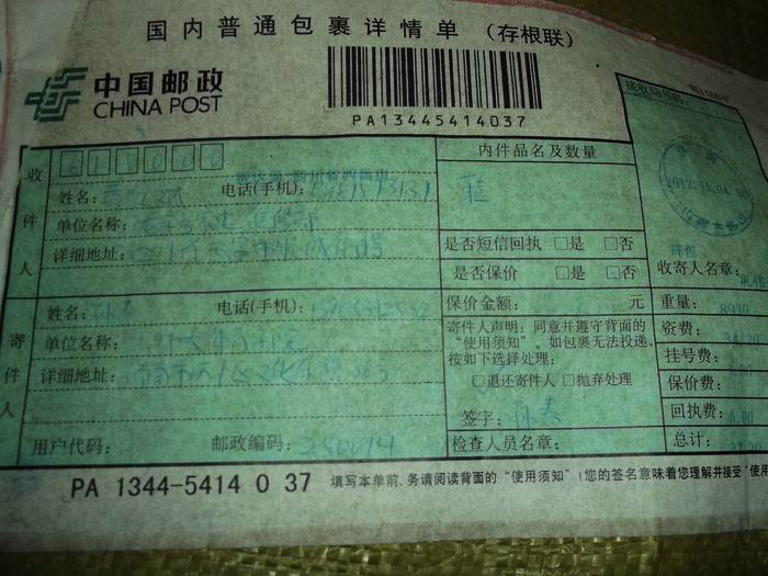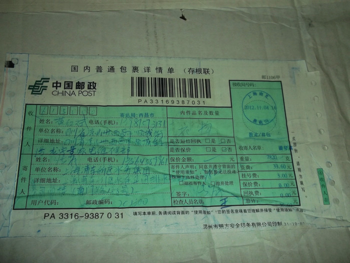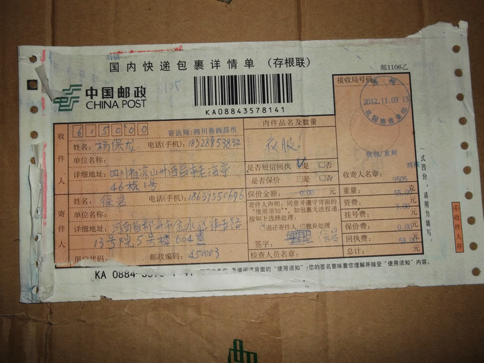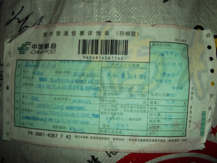 2012.11.10-12物资收到情况
