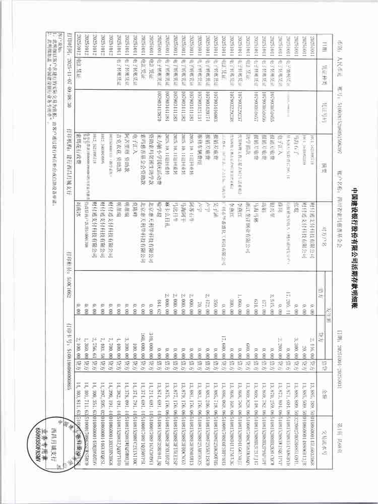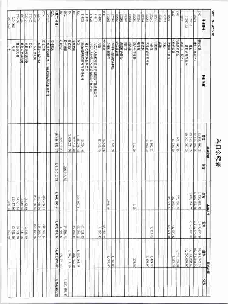 2025年10月财务报表