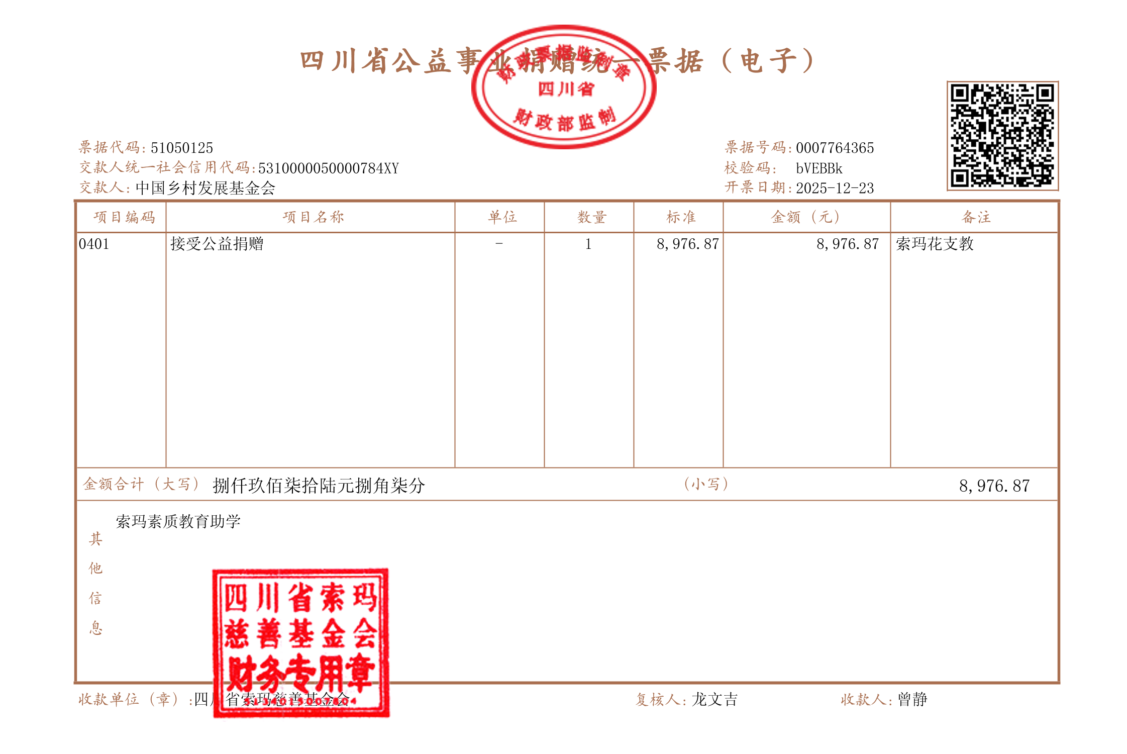 | 四川省索玛慈善基金会 2025年12月19日 | ||||