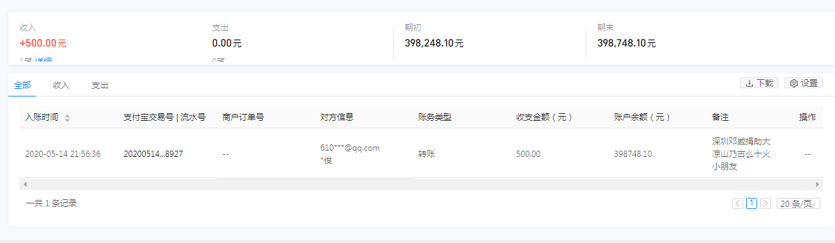 2020年5月14日接收捐赠的信息