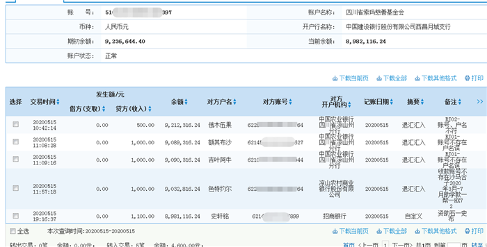 2020年5月15日接收捐赠的信息