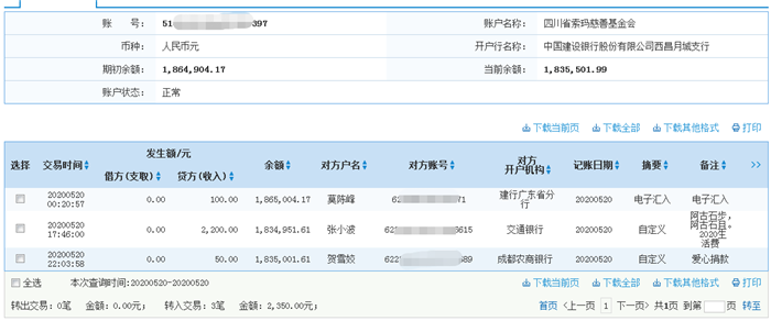 2020年5月20日接收捐赠的信息