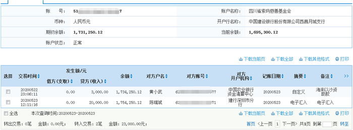 2020年5月23日接收捐赠的信息
