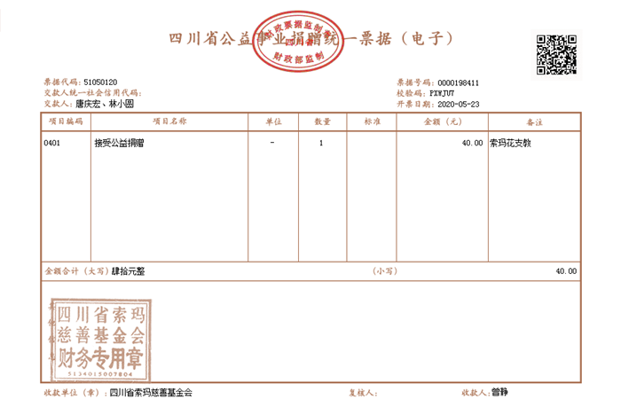 | 四川省索玛慈善基金会 2020年5月23日 | ||||