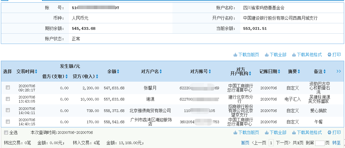 | 四川省索玛慈善基金会 2020年7月6日 | ||||