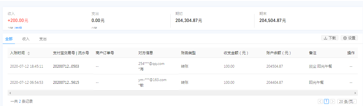| 7月12日收到 | 喻敏 | 阳光午餐 | ¥100.00 | 阳光午餐 |