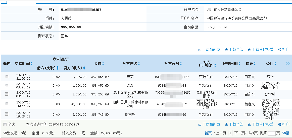 | 四川省索玛慈善基金会 2020年7月13日 | ||||