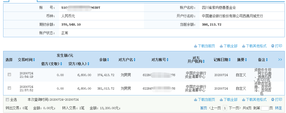 | 四川省索玛慈善基金会 2020年7月24日 | ||||
