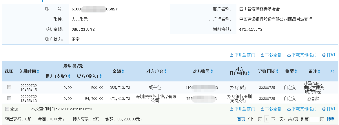 2020年7月29日接收捐赠的信息