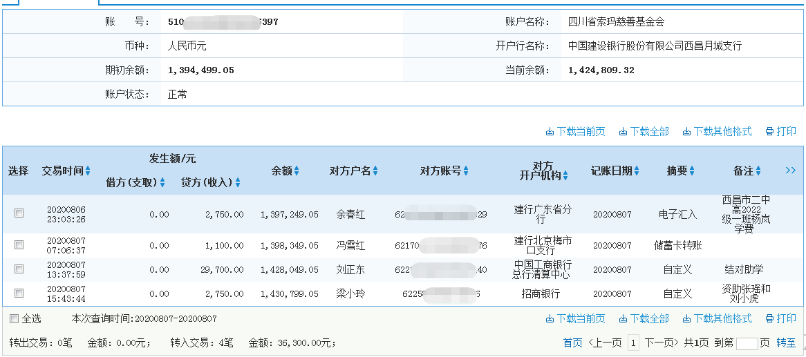 | 四川省索玛慈善基金会 2020年8月7日 | ||||