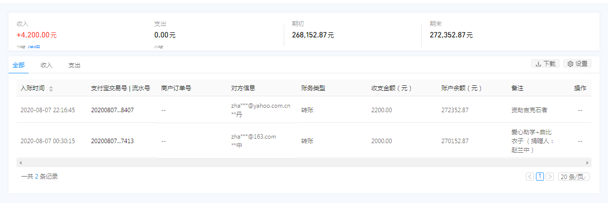 2020年8月7日接收捐赠的信息