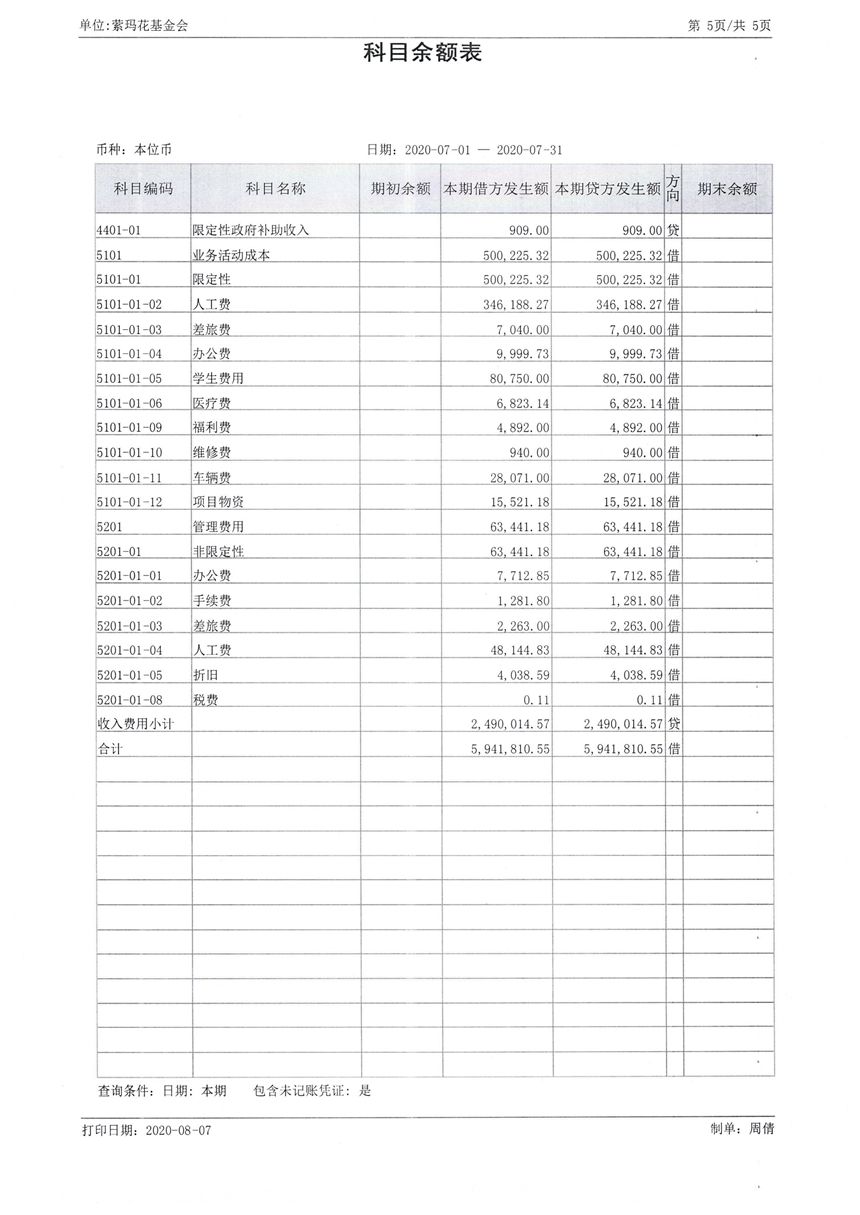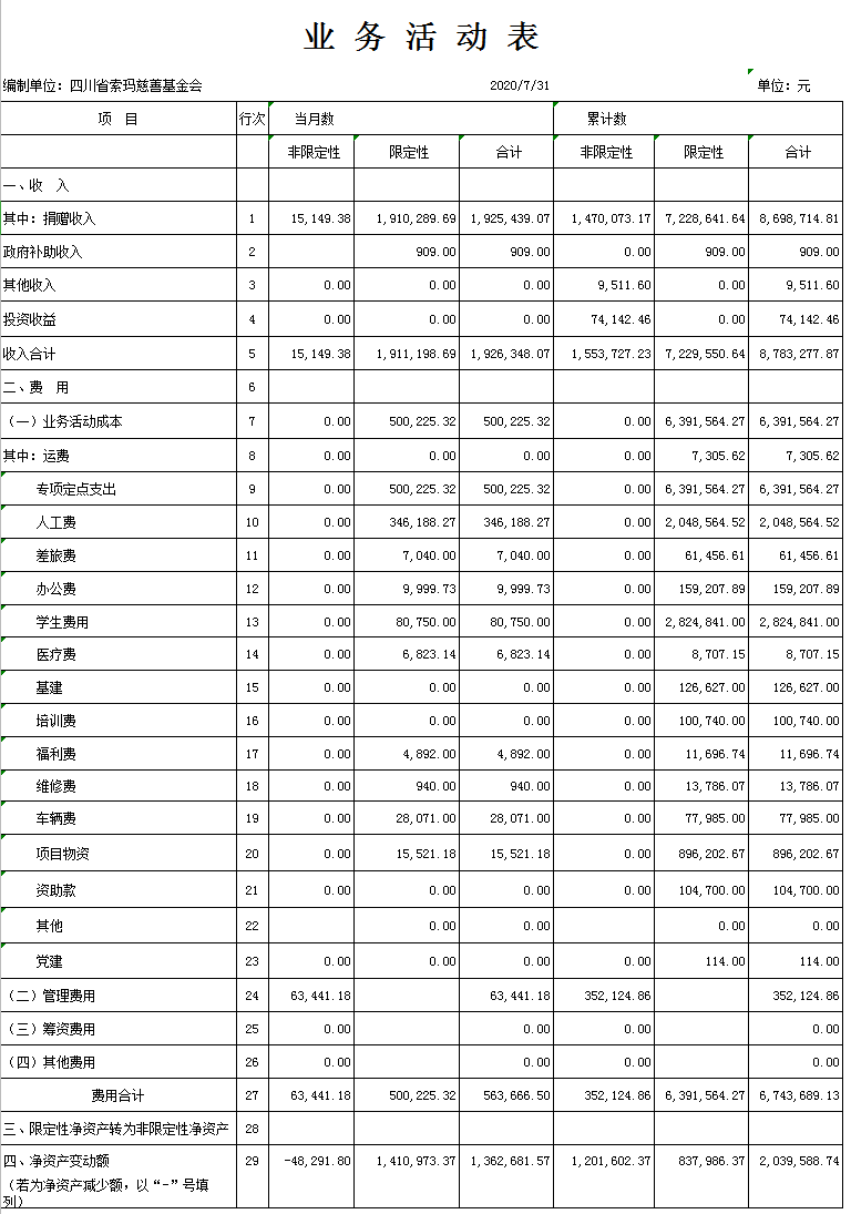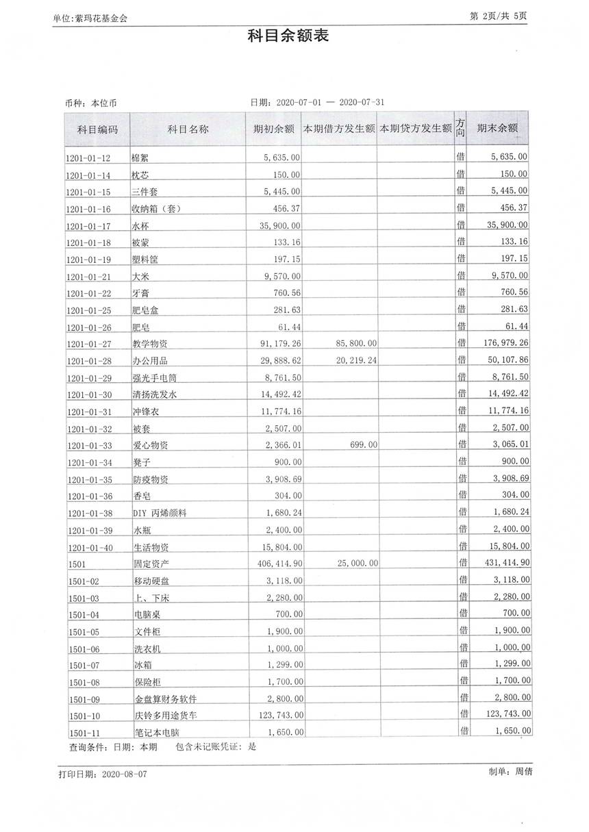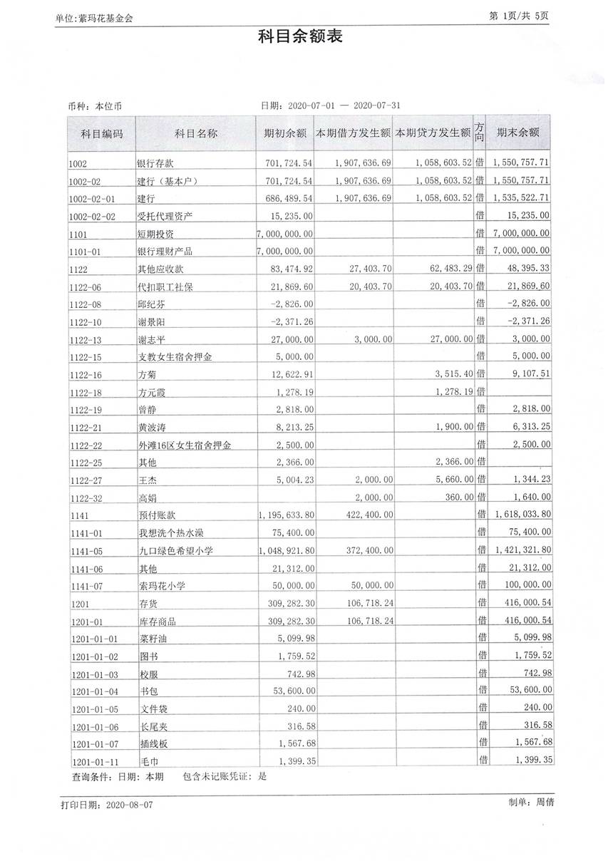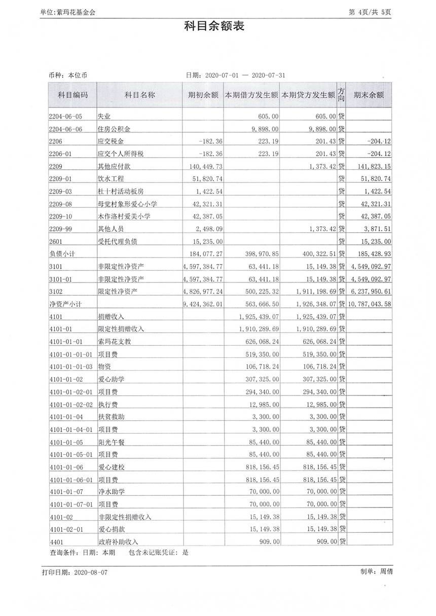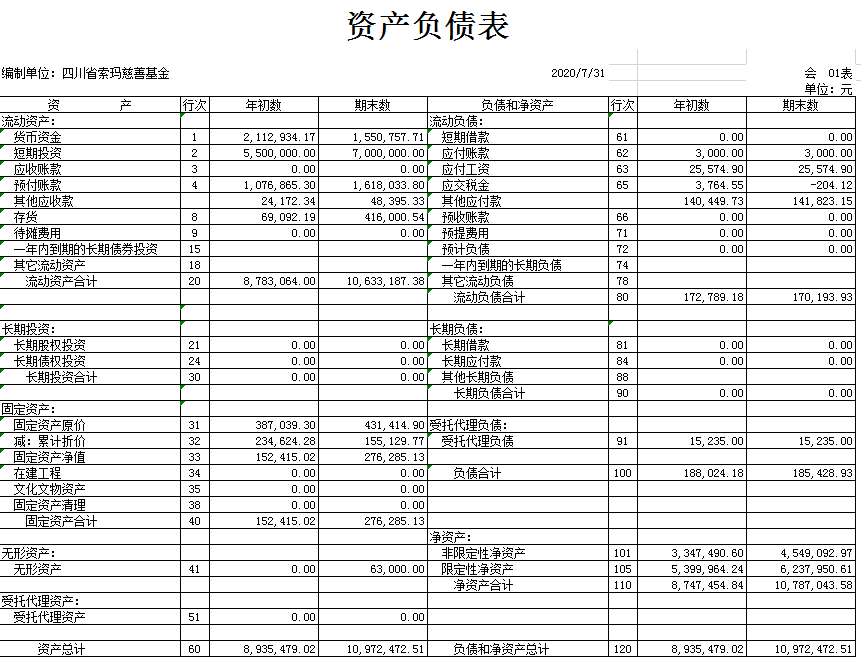 2020年7月财务报表