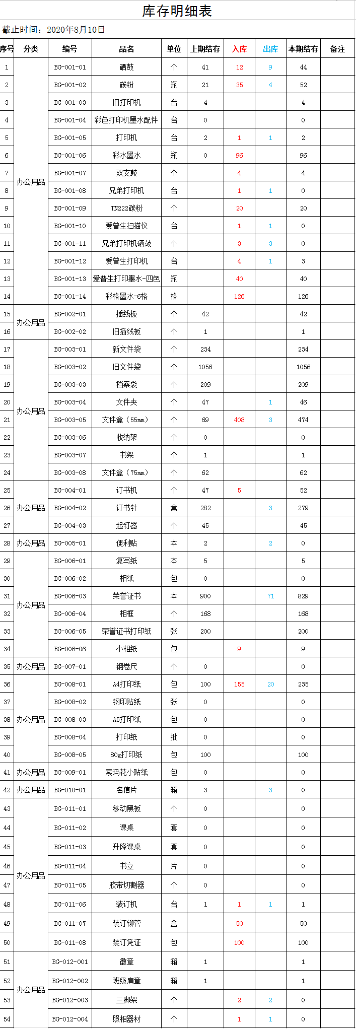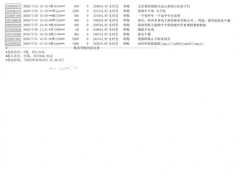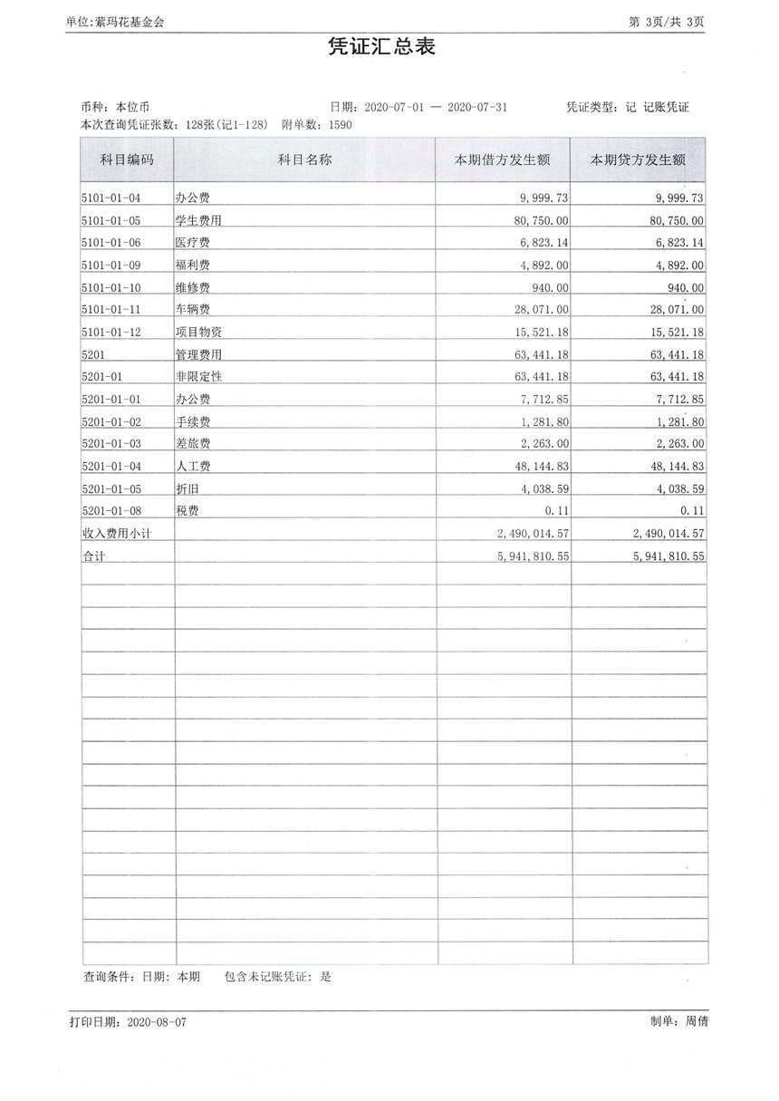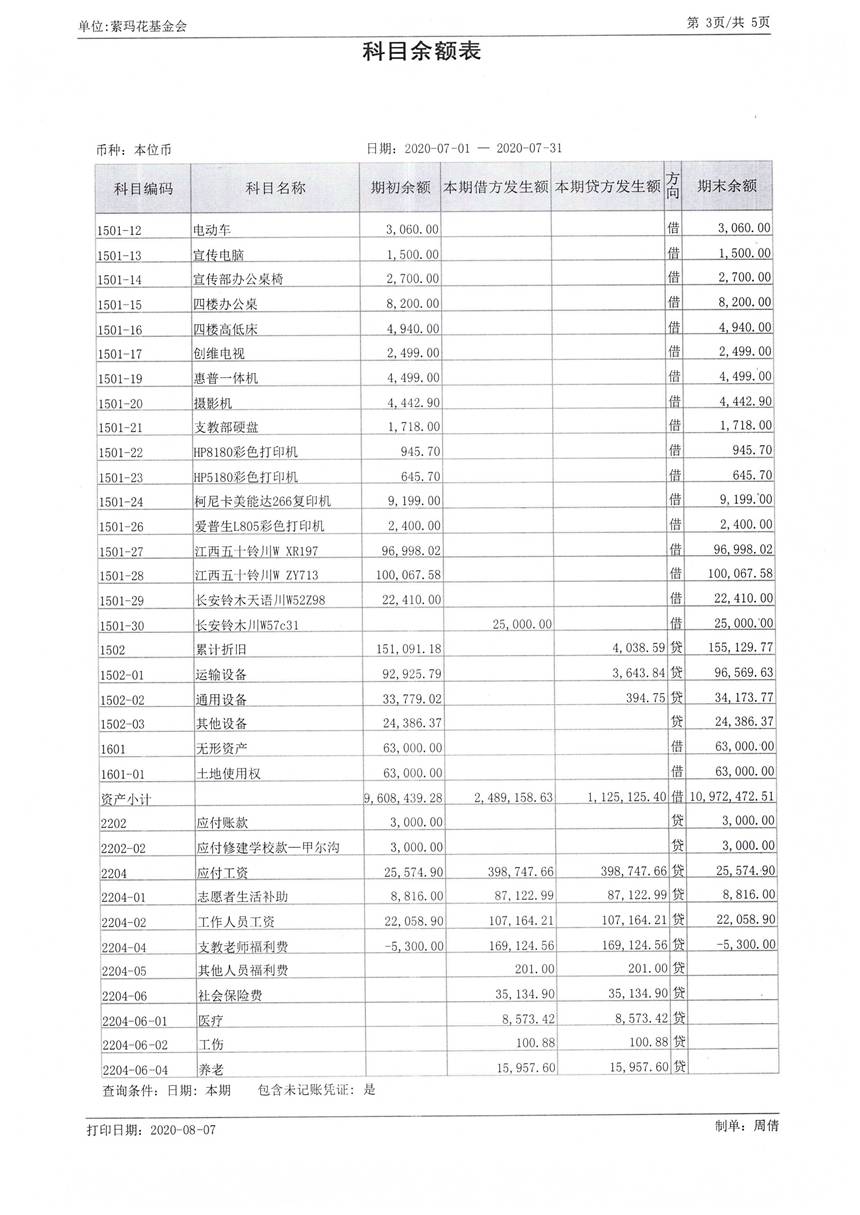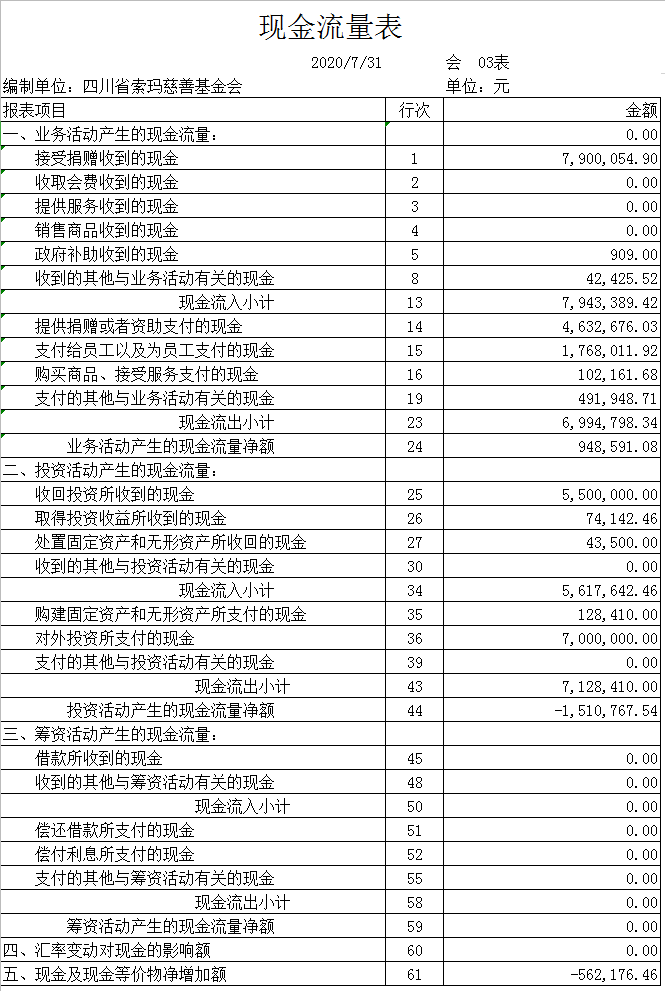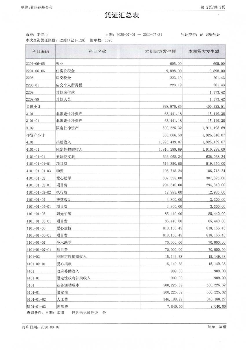 2020年7月财务报表