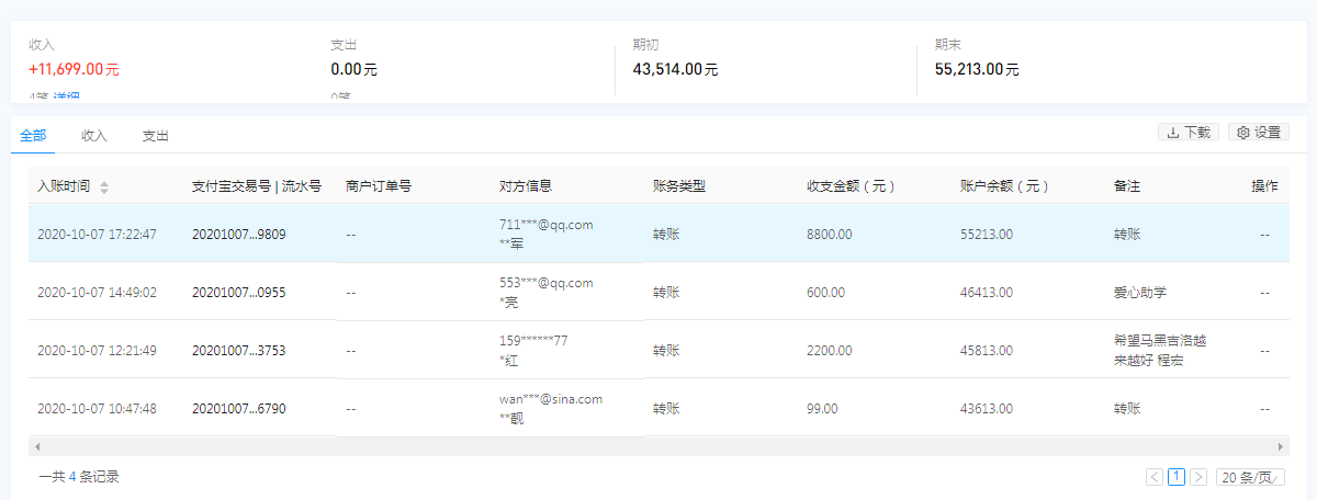 2020年10月7日接收捐赠的信息