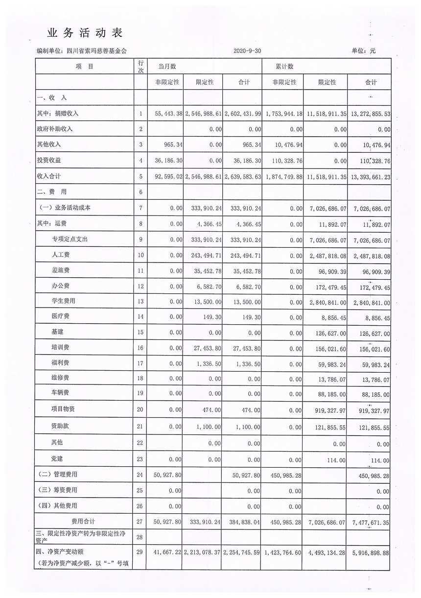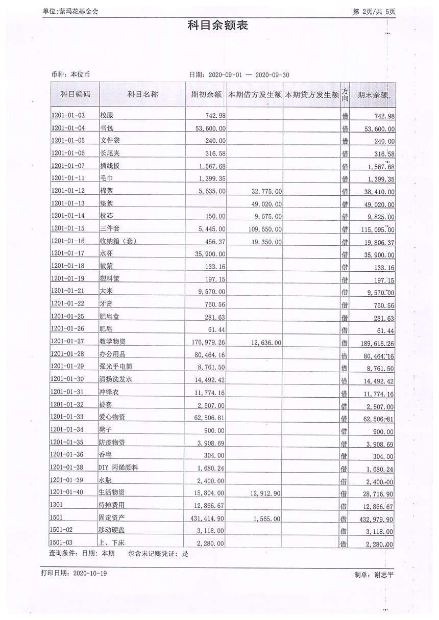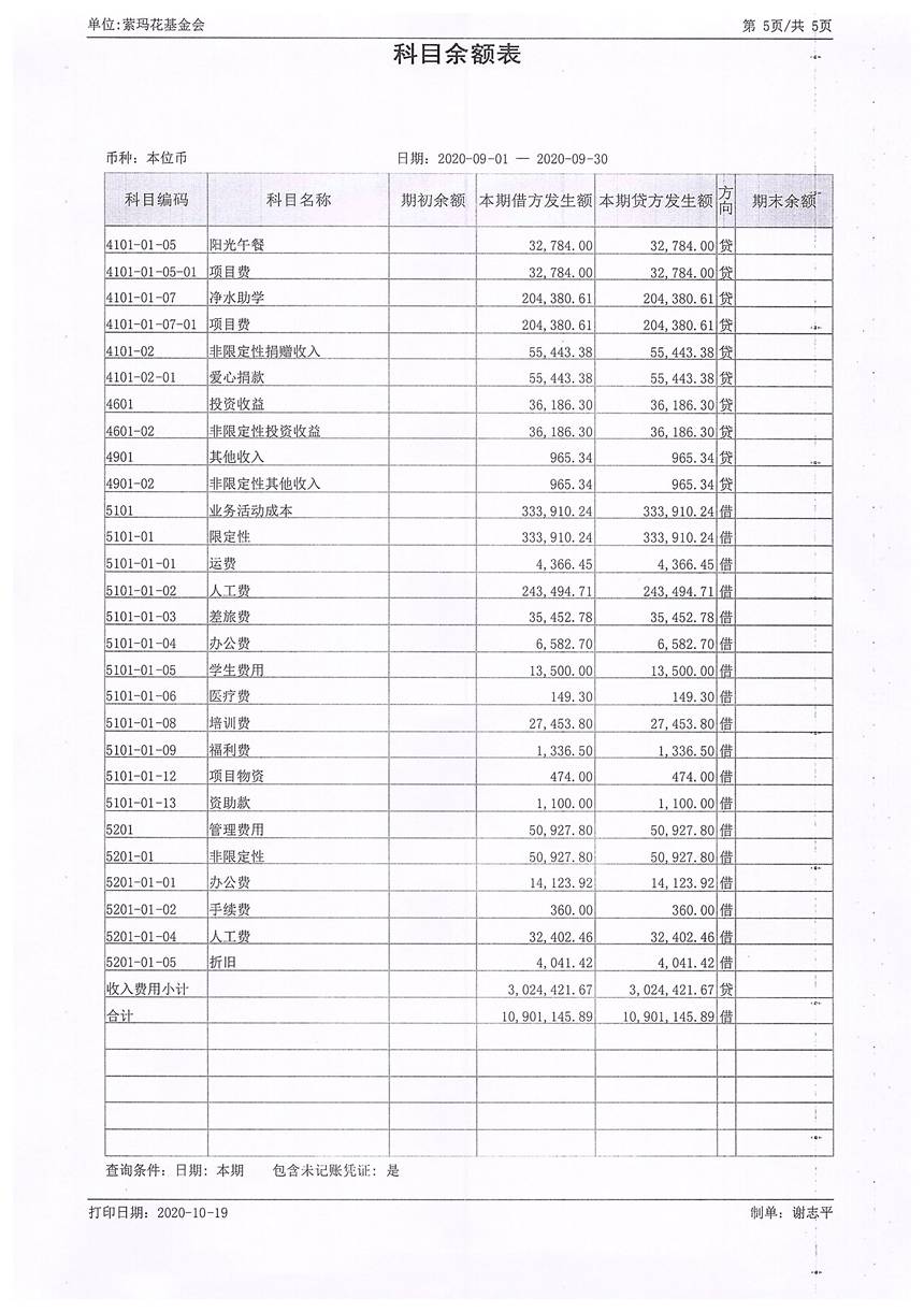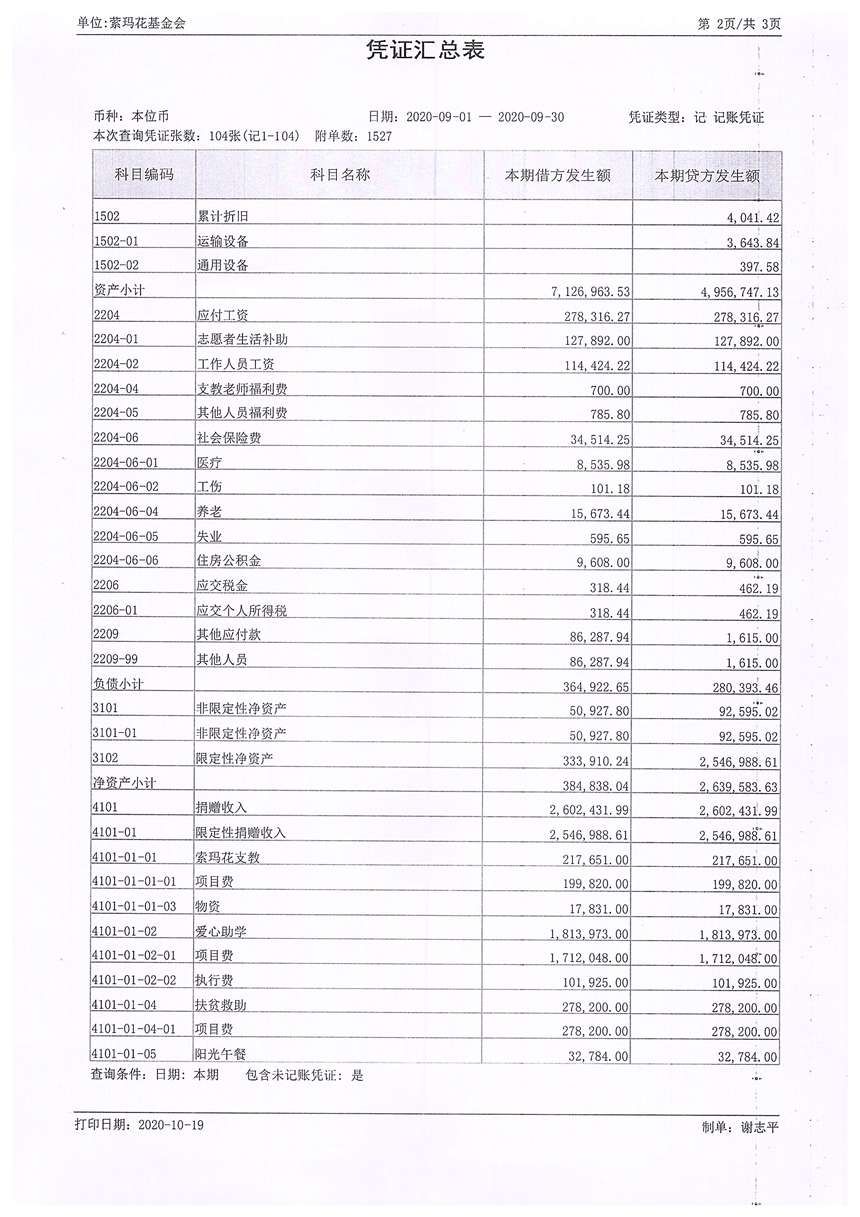 2020年9月财务报表