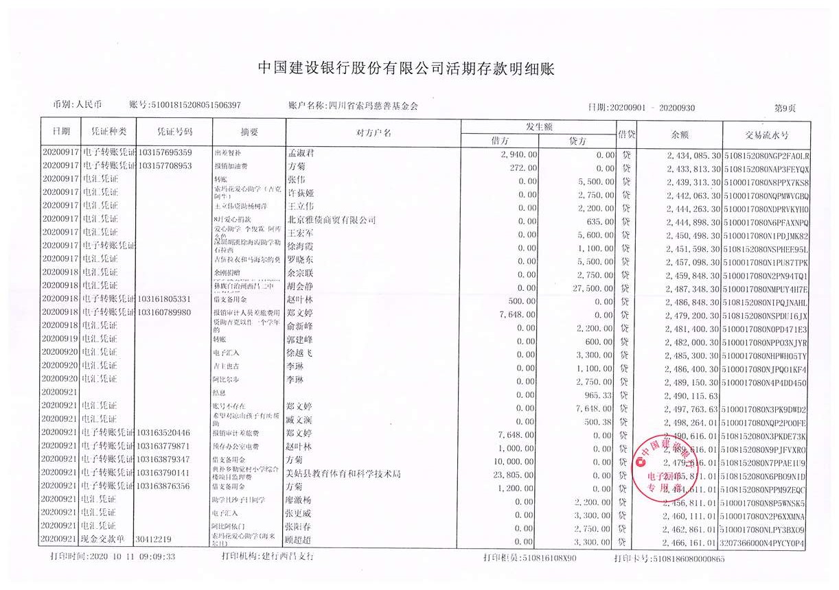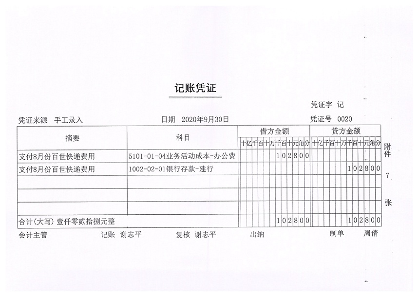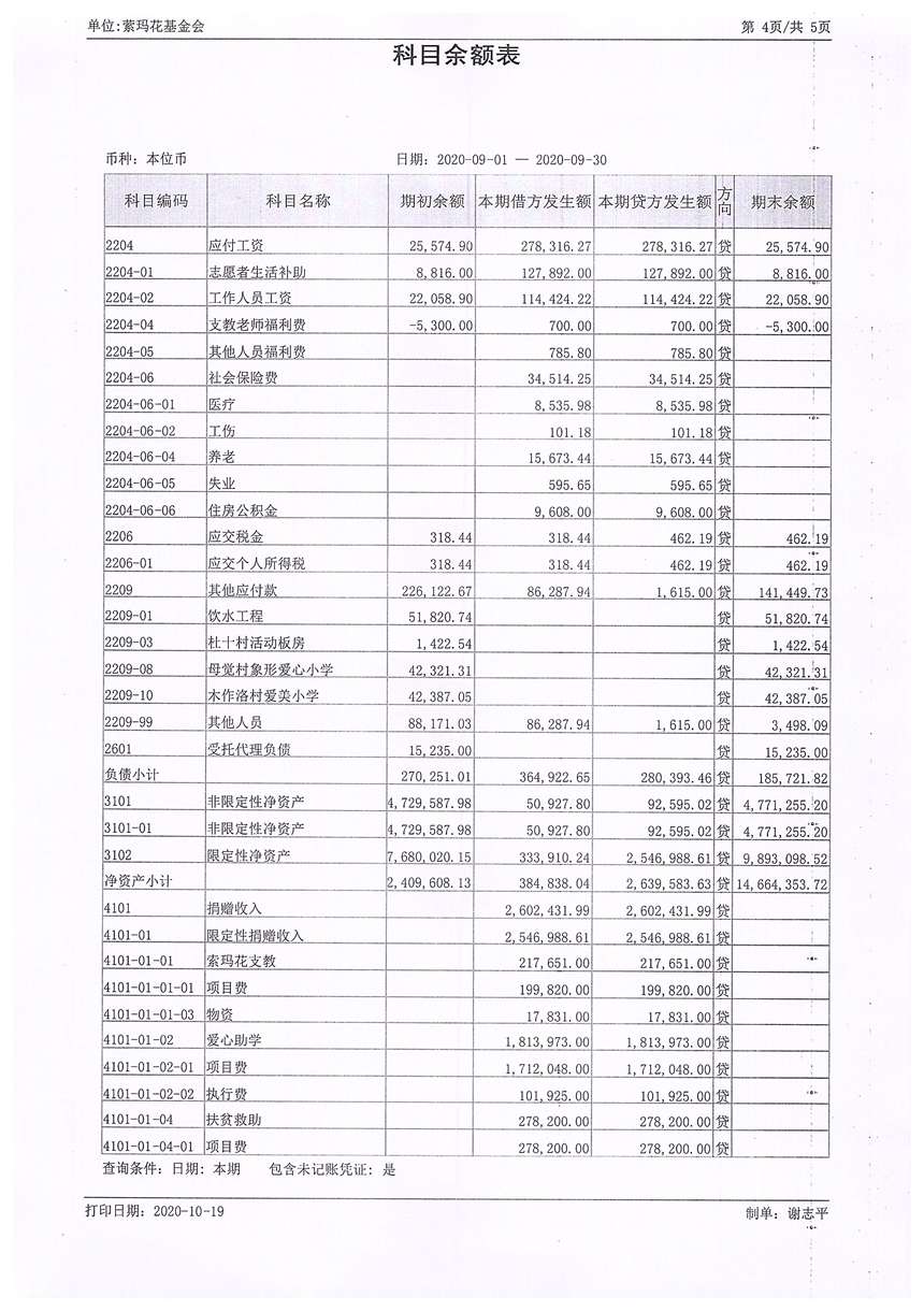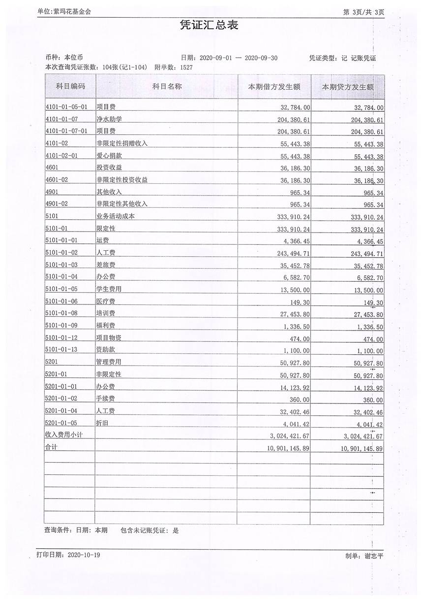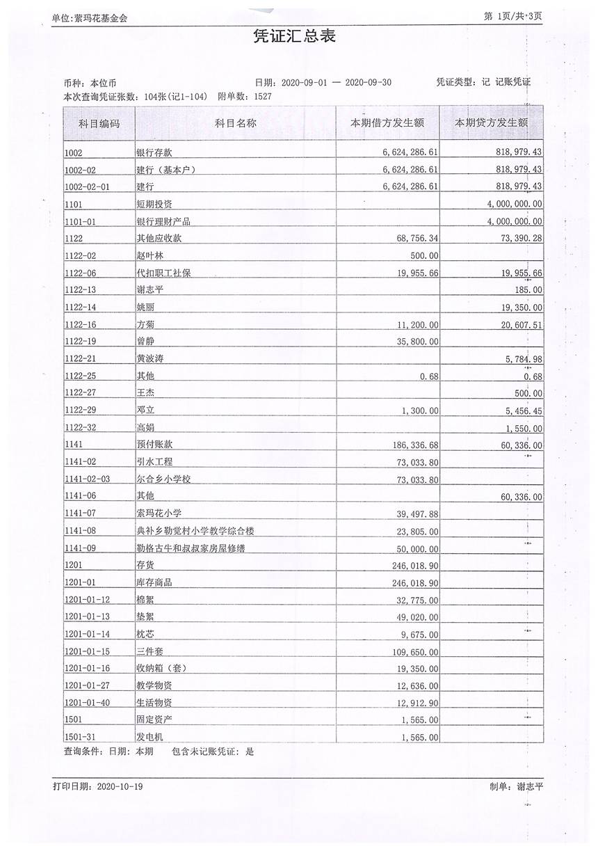 2020年9月财务报表
