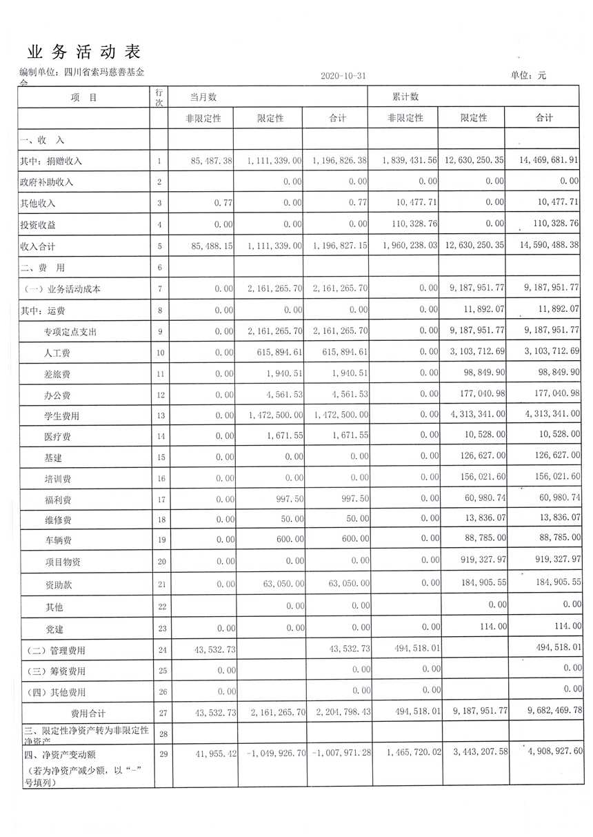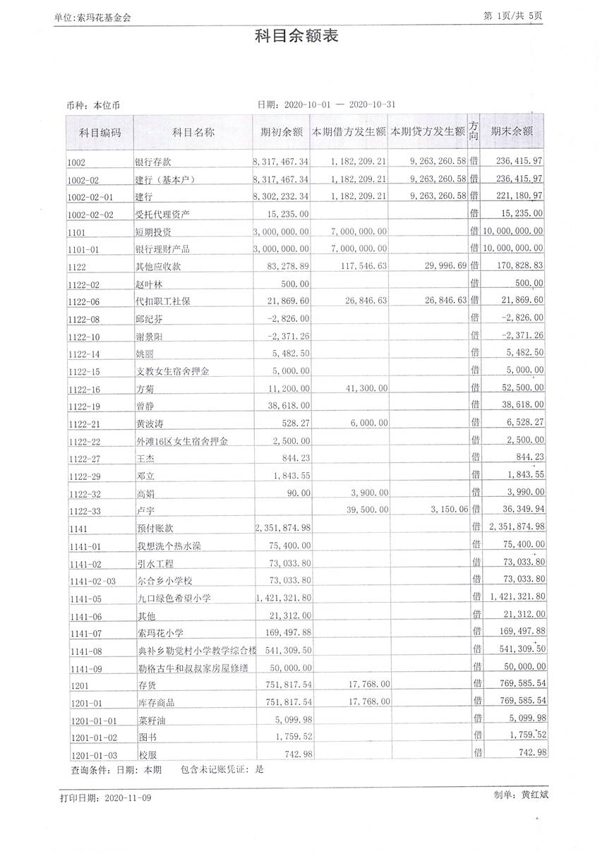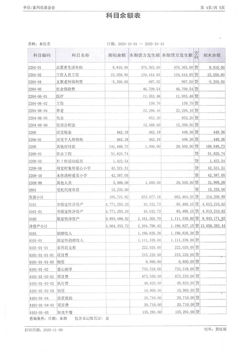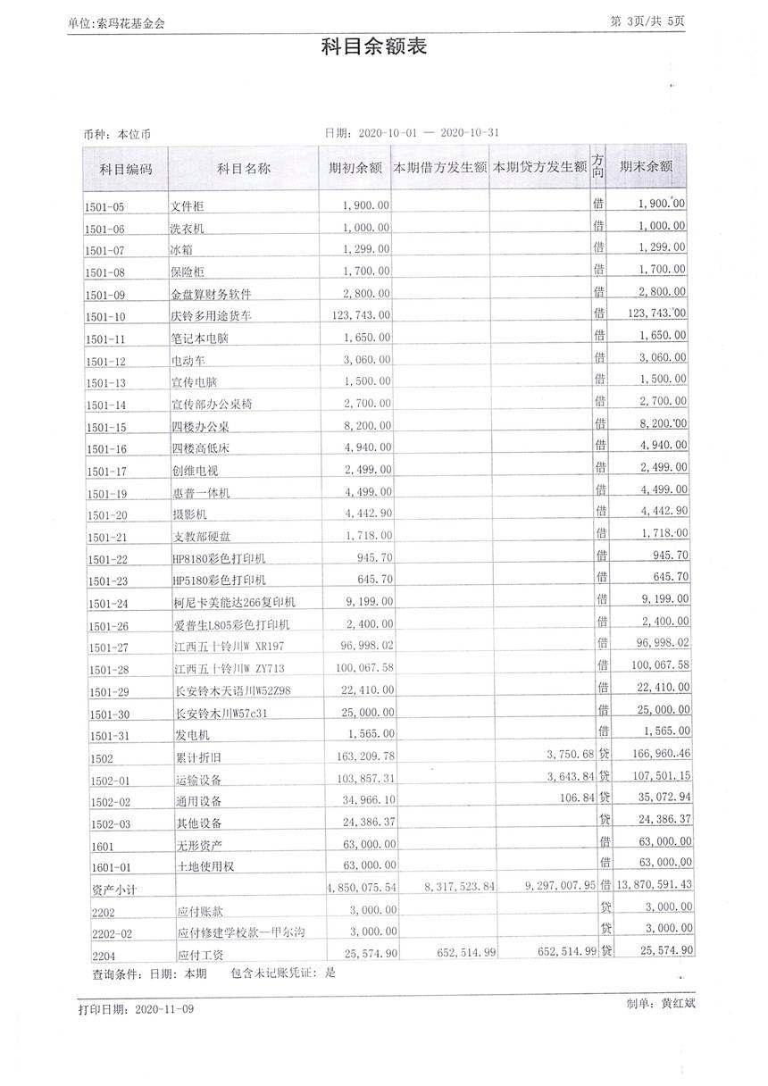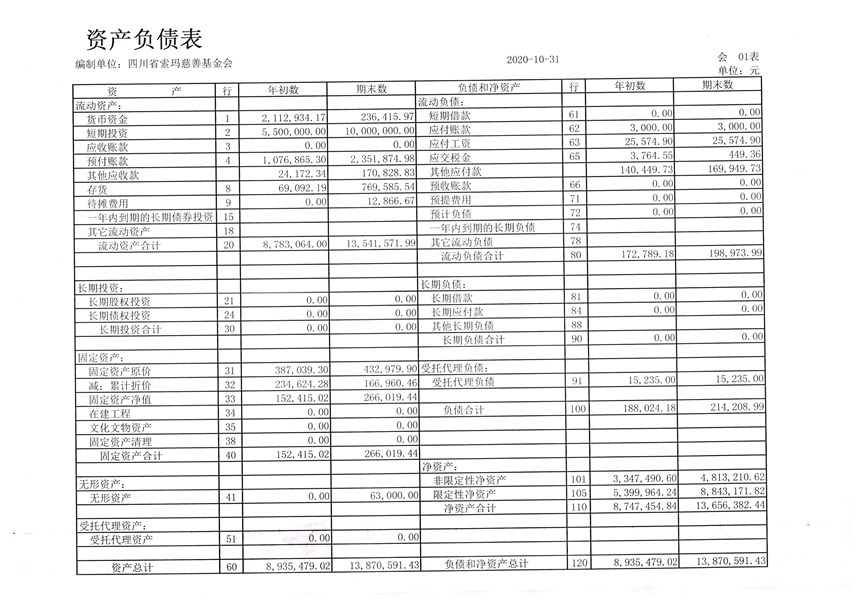 2020年10月财务报表