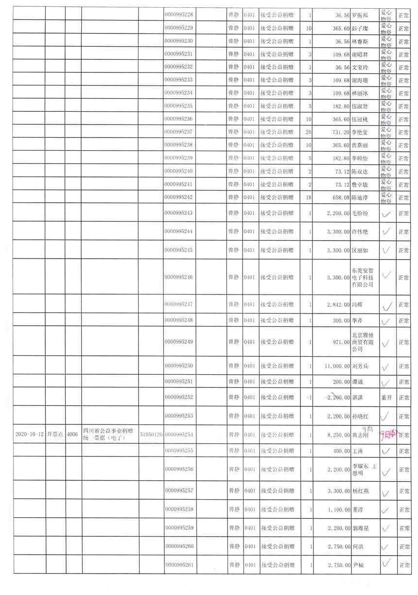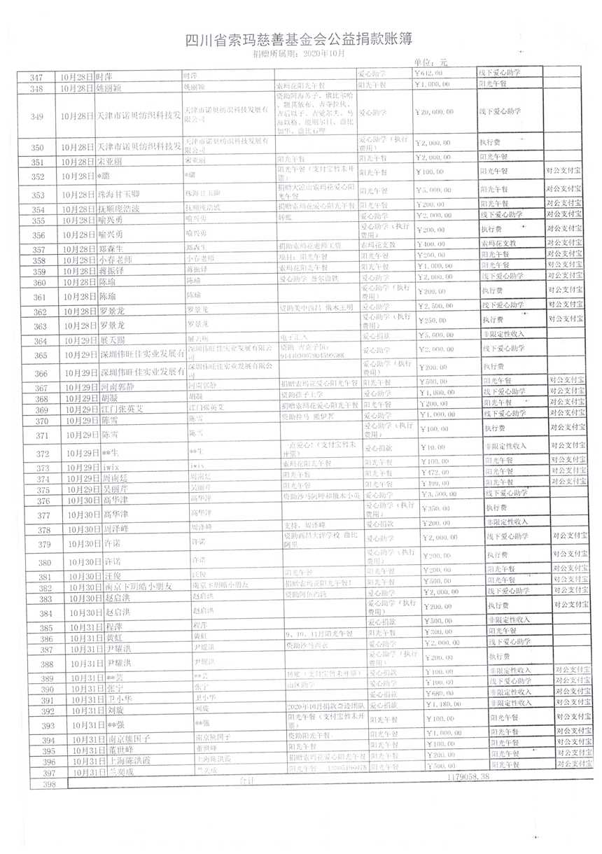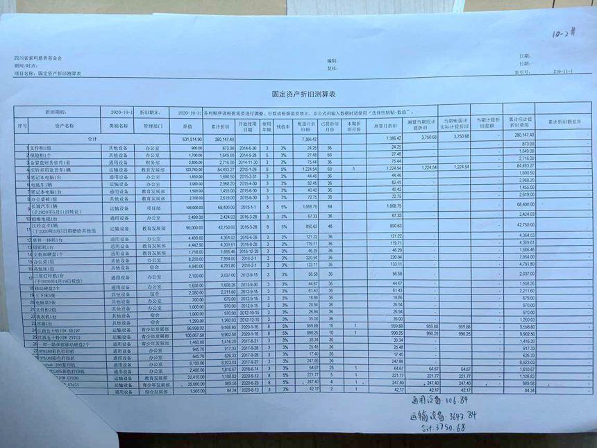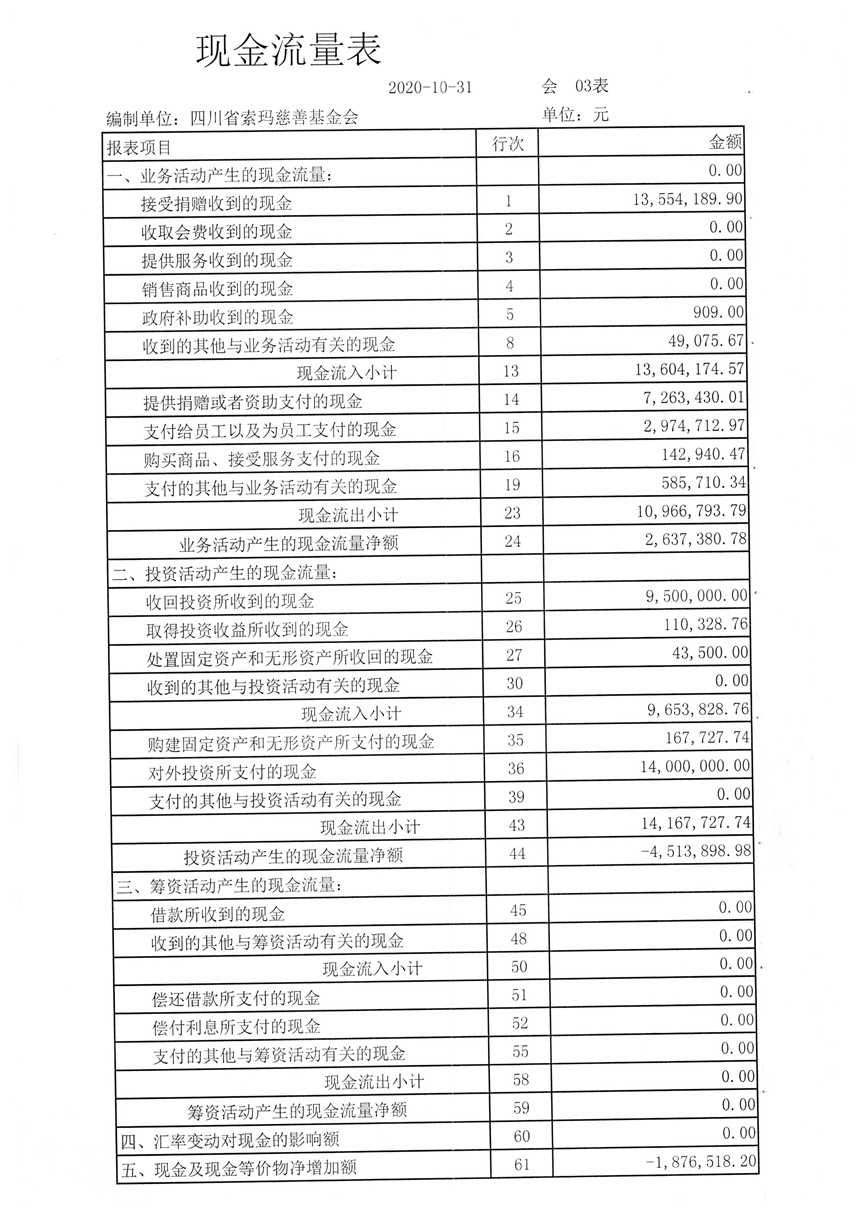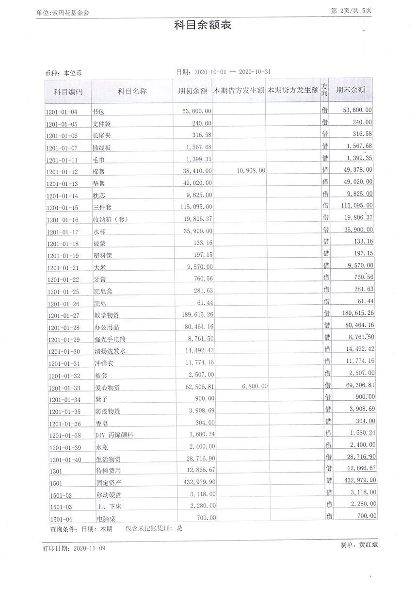 2020年10月财务报表