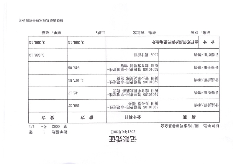2021年6月财务报表