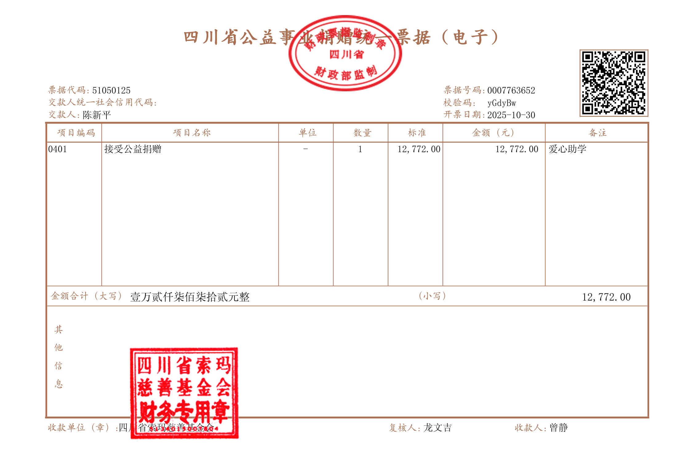 | 四川省索玛慈善基金会 2025年10月28日 | ||||